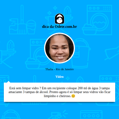 Em um recipiente coloque 200 ml de água 3 tampa amaciante 3 tampas de álcool. Pronto agora é só limpar seus vidros vão ficar limpinho e cheiroso.😊