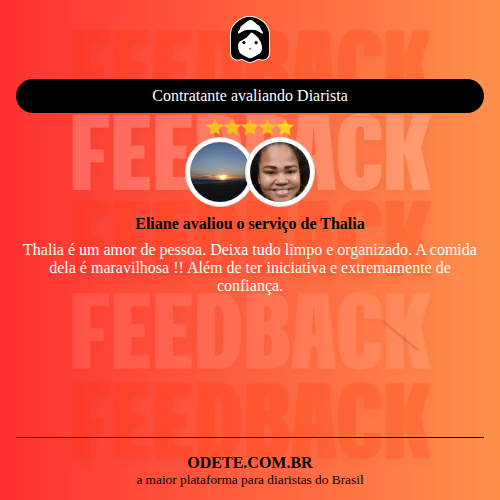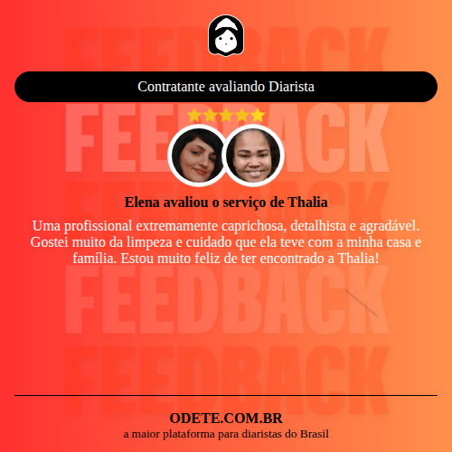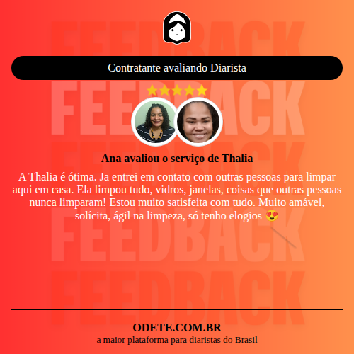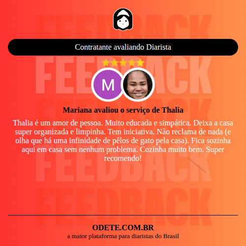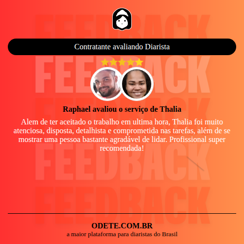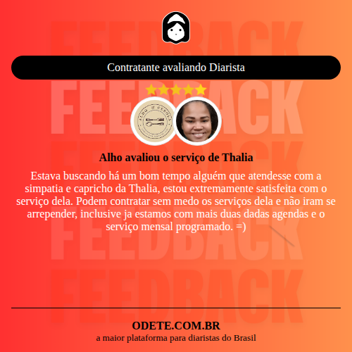 Chegou a contratar Thalia?Que tal avaliar o serviço realizado? Isso vai servir para que outras pessoas confiem ainda mais na hora de realizar a contratação!