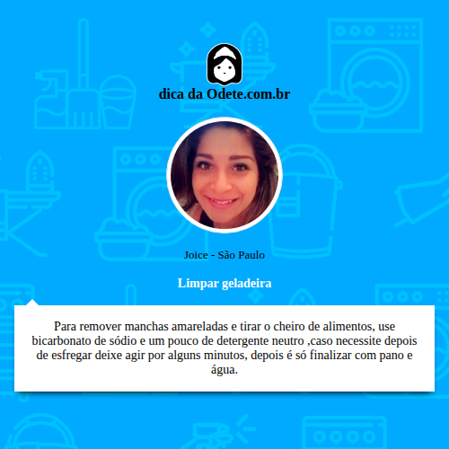 Para remover manchas amareladas e tirar o cheiro de alimentos, use bicarbonato de sódio e um pouco de detergente neutro ,caso necessite depois de esfregar deixe agir por alguns minutos, depois é só finalizar com pano e água.