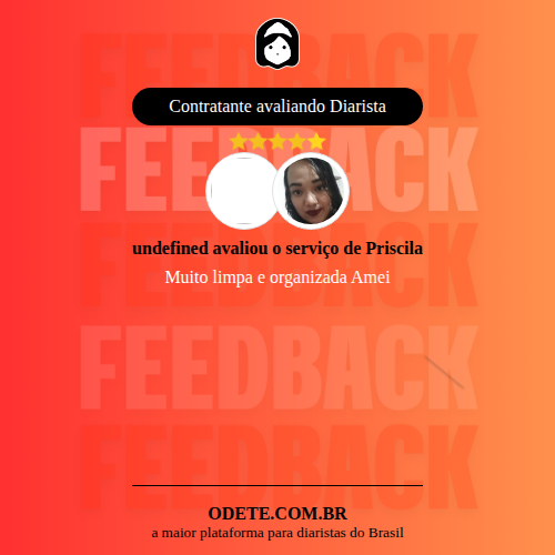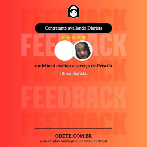 Chegou a contratar Priscila?Que tal avaliar o serviço realizado? Isso vai servir para que outras pessoas confiem ainda mais na hora de realizar a contratação!