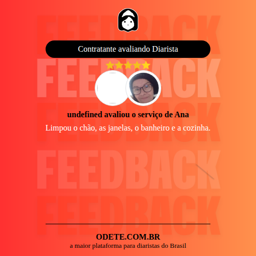 Chegou a contratar Ana?Que tal avaliar o serviço realizado? Isso vai servir para que outras pessoas confiem ainda mais na hora de realizar a contratação!