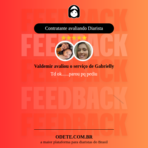 Chegou a contratar Gabrielly?Que tal avaliar o serviço realizado? Isso vai servir para que outras pessoas confiem ainda mais na hora de realizar a contratação!