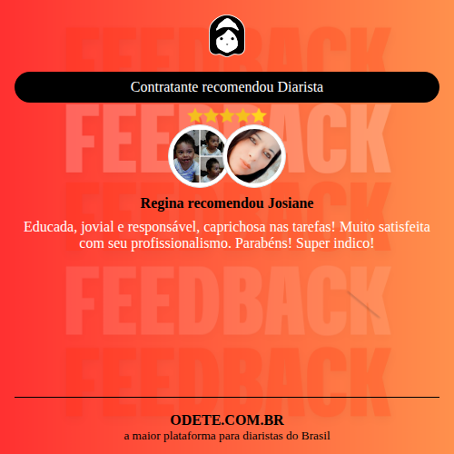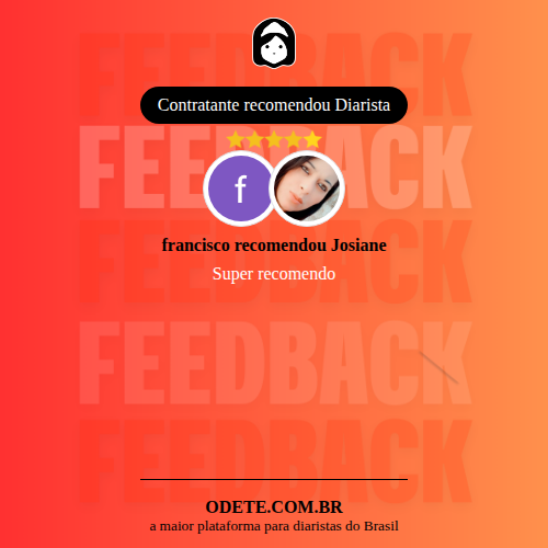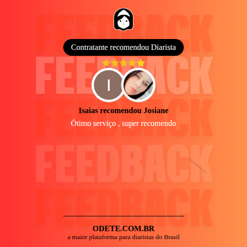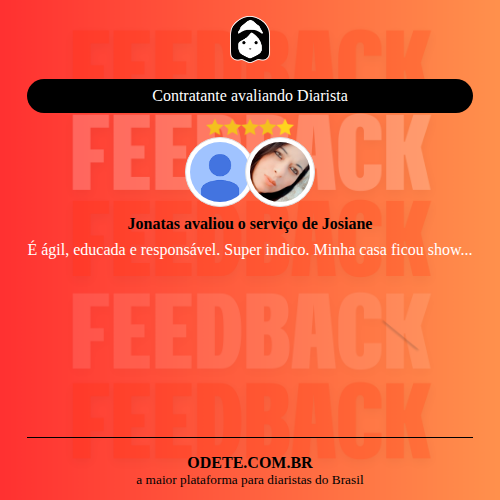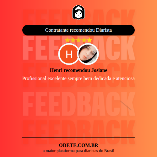 Chegou a contratar Josiane?Que tal avaliar o serviço realizado? Isso vai servir para que outras pessoas confiem ainda mais na hora de realizar a contratação!