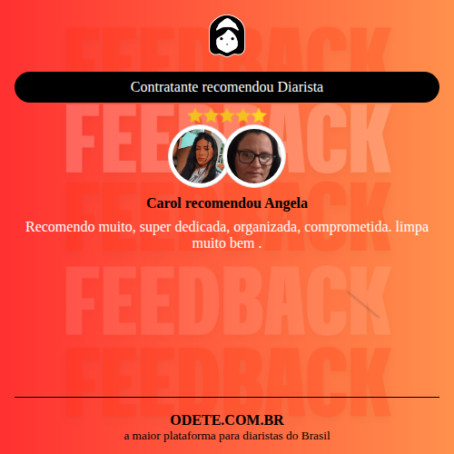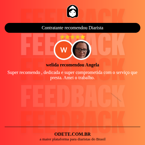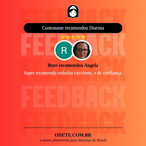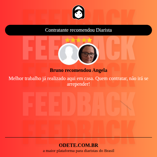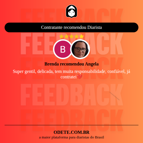Chegou a contratar Angela?Que tal avaliar o serviço realizado? Isso vai servir para que outras pessoas confiem ainda mais na hora de realizar a contratação!