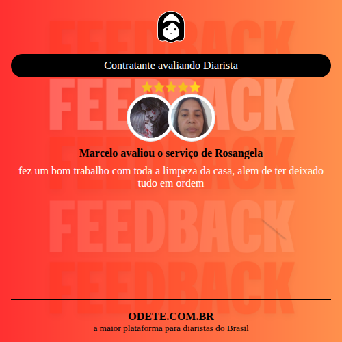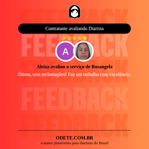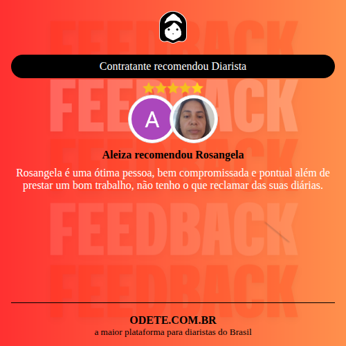Chegou a contratar Rosangela?Que tal avaliar o serviço realizado? Isso vai servir para que outras pessoas confiem ainda mais na hora de realizar a contratação!