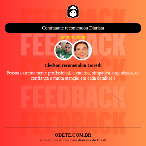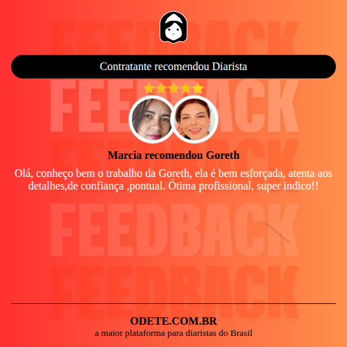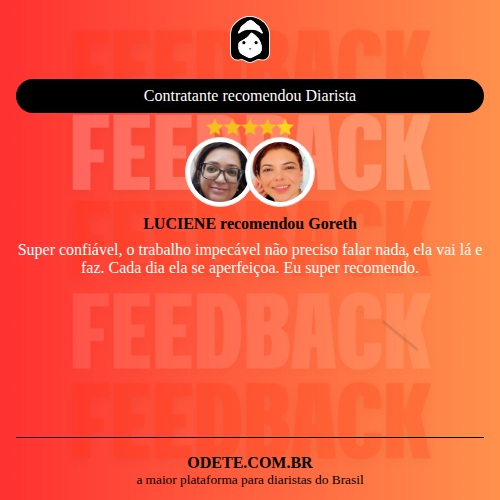 Chegou a contratar Goreth?Que tal avaliar o serviço realizado? Isso vai servir para que outras pessoas confiem ainda mais na hora de realizar a contratação!