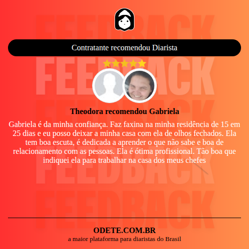 Chegou a contratar Gabriela?Que tal avaliar o serviço realizado? Isso vai servir para que outras pessoas confiem ainda mais na hora de realizar a contratação!