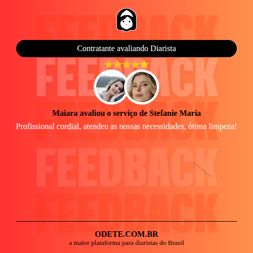 Chegou a contratar Stefanie Maria?Que tal avaliar o serviço realizado? Isso vai servir para que outras pessoas confiem ainda mais na hora de realizar a contratação!