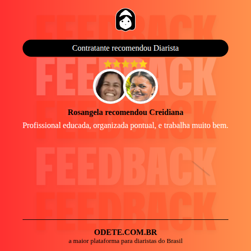Chegou a contratar Creidiana?Que tal avaliar o serviço realizado? Isso vai servir para que outras pessoas confiem ainda mais na hora de realizar a contratação!