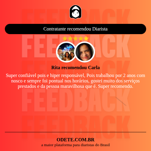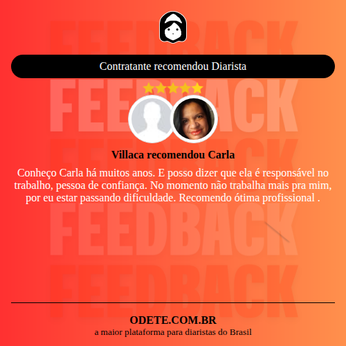 Chegou a contratar Carla?Que tal avaliar o serviço realizado? Isso vai servir para que outras pessoas confiem ainda mais na hora de realizar a contratação!