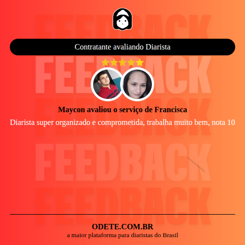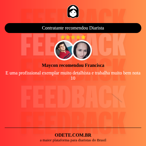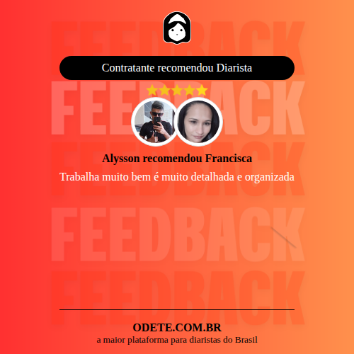 Chegou a contratar Francisca?Que tal avaliar o serviço realizado? Isso vai servir para que outras pessoas confiem ainda mais na hora de realizar a contratação!