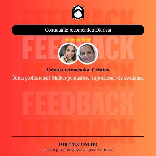 Chegou a contratar Cristina?Que tal avaliar o serviço realizado? Isso vai servir para que outras pessoas confiem ainda mais na hora de realizar a contratação!