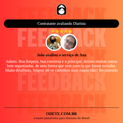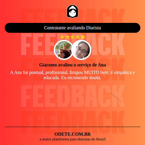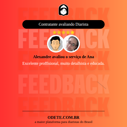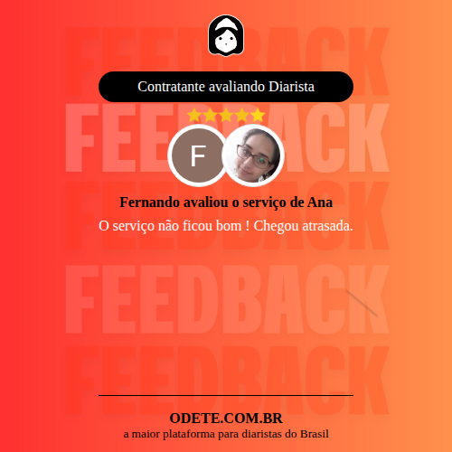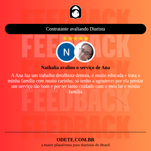 Chegou a contratar Ana?Que tal avaliar o serviço realizado? Isso vai servir para que outras pessoas confiem ainda mais na hora de realizar a contratação!