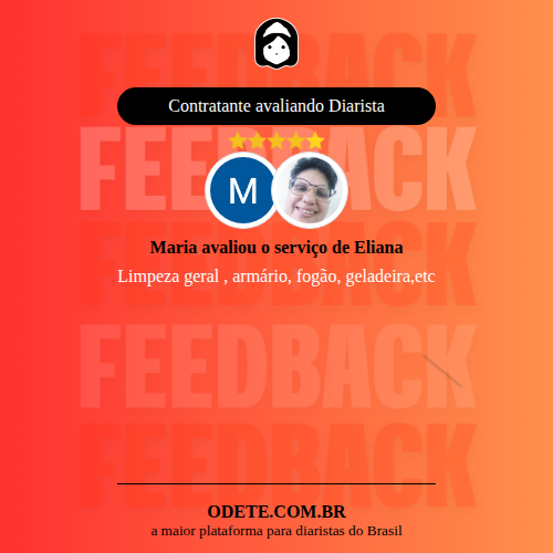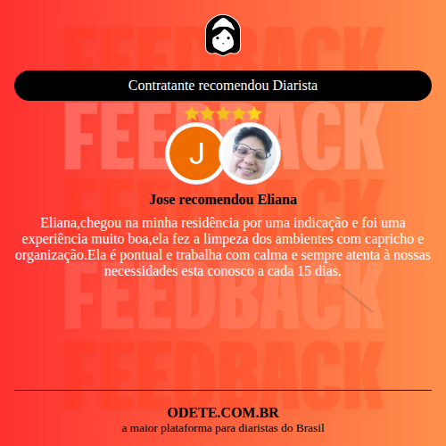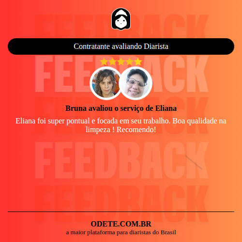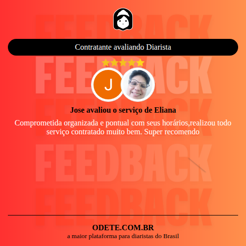 Chegou a contratar Eliana?Que tal avaliar o serviço realizado? Isso vai servir para que outras pessoas confiem ainda mais na hora de realizar a contratação!