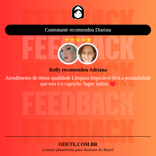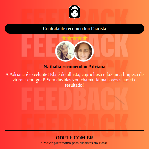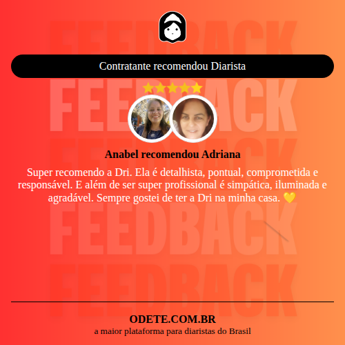 Chegou a contratar Adriana?Que tal avaliar o serviço realizado? Isso vai servir para que outras pessoas confiem ainda mais na hora de realizar a contratação!