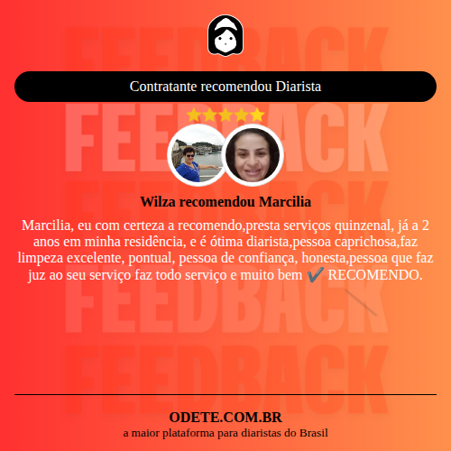 Chegou a contratar Marcilia?Que tal avaliar o serviço realizado? Isso vai servir para que outras pessoas confiem ainda mais na hora de realizar a contratação!