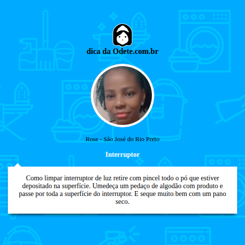Como limpar interruptor de luz retire com pincel todo o pó que estiver depositado na superfície. Umedeça um pedaço de algodão com produto e passe por toda a superfície do interruptor. E seque muito bem com um pano seco.